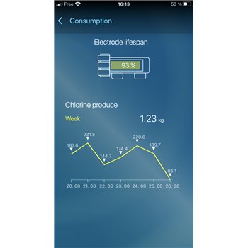 L'application Pool Live et le site pool.aseko.com permettent la consultation à distance des paramètres de la piscine, de leur historique complet, et d'une vue d’ensemble des opérations de maintenance (sous réserve de la connexion de l'appareil à internet, via un câble Ethernet).